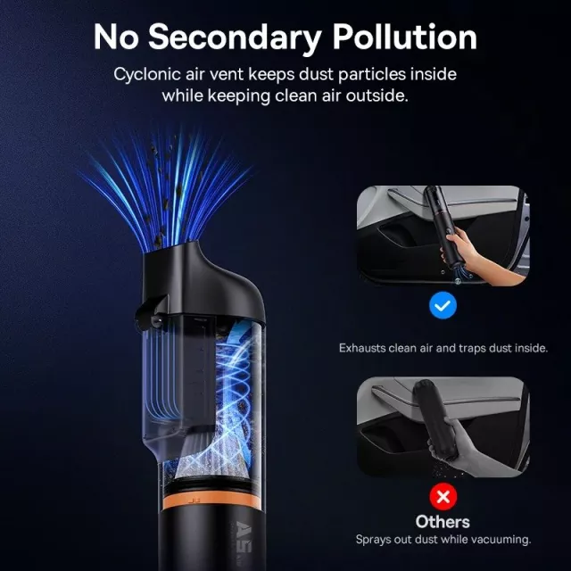 It also features a high-density HEPA filter that captures 99.99% of dust particles as small as 0.3 microns. This helps reduce allergies, prevents secondary pollution, and keeps your home and car air cleaner while you vacuum.