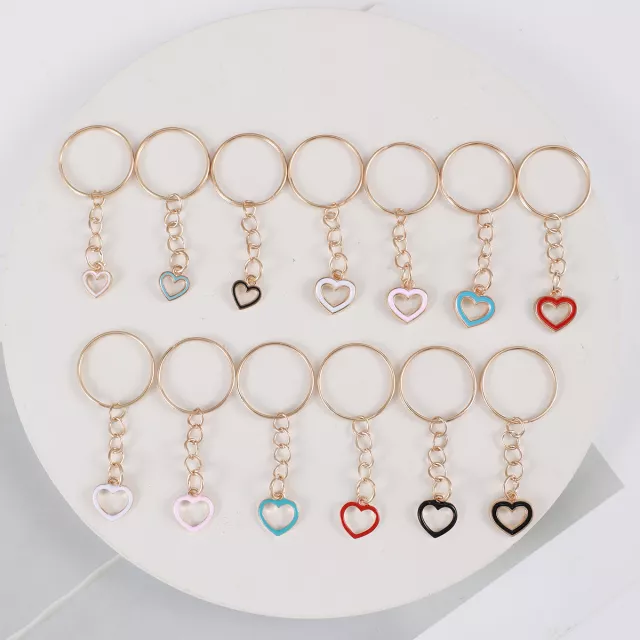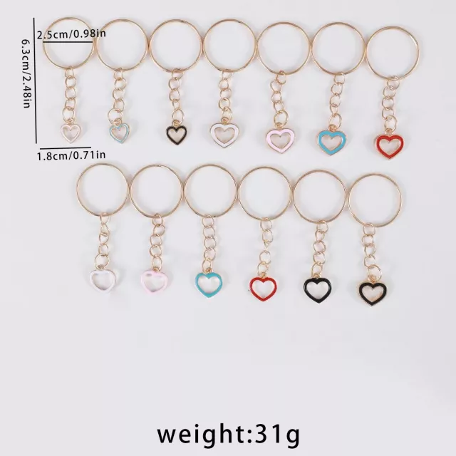 Add a touch of charm and color to your everyday accessories with this delightful 13pcs Candy Color Heart Keychain Set. Each keyring is beautifully designed in soft peach tones and made with high-quality zinc alloy for a glossy, durable finish. The romantic heart shape and gold-tone detailing give it a playful yet elegant appeal, perfect for adding personality to your bags, keys, or backpacks.