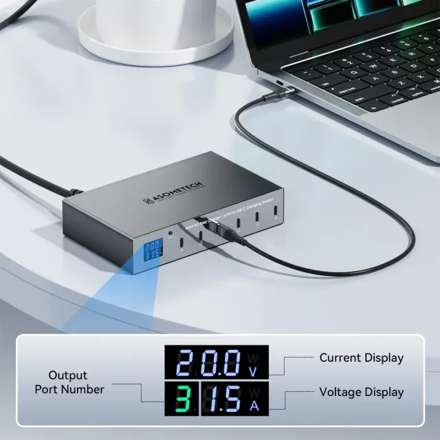 With a clean desktop design and a 3.9 ft power cable, it fits perfectly on your work desk, bedside table, or family charging hub. It’s made for busy homes, offices, and charging multiple devices overnight or during the day.