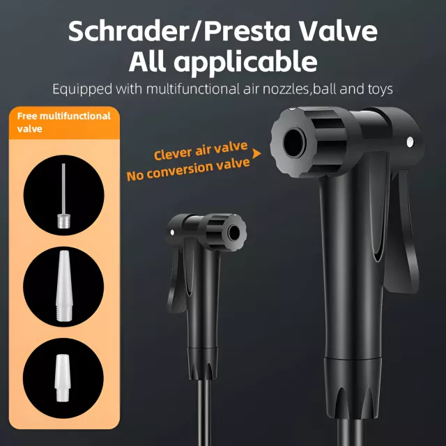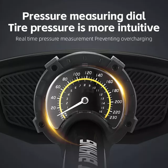 Looking for a fast, reliable way to keep your tires at peak performance? This high-pressure foot pump delivers up to 160 PSI, giving you the power and control you need for bicycles, motorcycles, e-bikes, sports balls and even small inflatables. Designed for everyday riders and outdoor enthusiasts, it combines strength, simplicity and versatility in one essential tool. Its aluminum alloy construction ensures long-lasting durability, while the manual operation means you never have to rely on electricity or batteries.