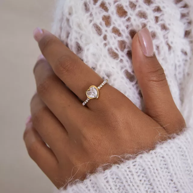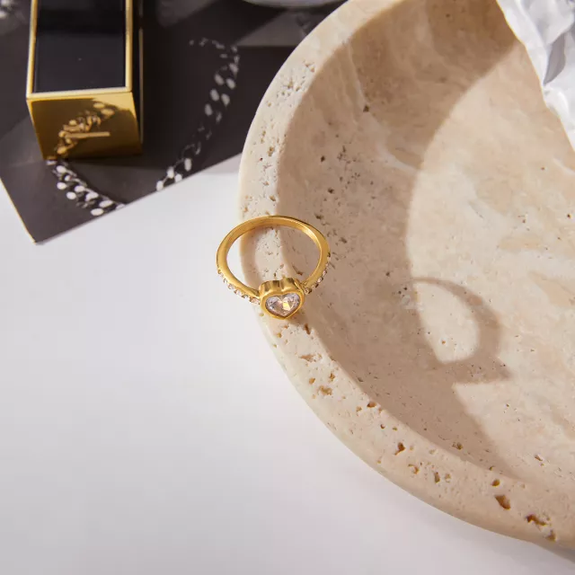 Discover a stunning accessory designed to make every moment shine. This elegant heart-shaped cubic zirconia ring brings together timeless beauty and modern style in a piece that feels luxurious yet effortless to wear. Crafted from durable stainless steel and finished with rich 18K PVD gold plating, it delivers long-lasting brilliance that keeps up with your everyday life. Its hypoallergenic design makes it gentle on sensitive skin, so you can enjoy comfort and confidence all day long.