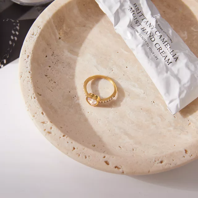 This fashionable ring offers a mix of beauty and practicality. It’s lightweight, easy to wear, and resistant to tarnishing thanks to its quality stainless steel base. The smooth 18K gold-plated surface and sparkling cubic zirconia create a polished appearance that stands out without feeling overwhelming.