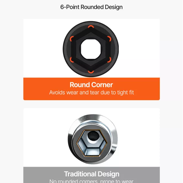 Each socket is crafted from high-quality alloy steel, delivering outstanding durability and resistance to wear. The 6-point, high-torque structure grips the flat sides of bolts instead of the corners, helping prevent rounding, slipping, and stripping even under intense pressure. This makes the set ideal for both impact wrench use and hand-driven applications.