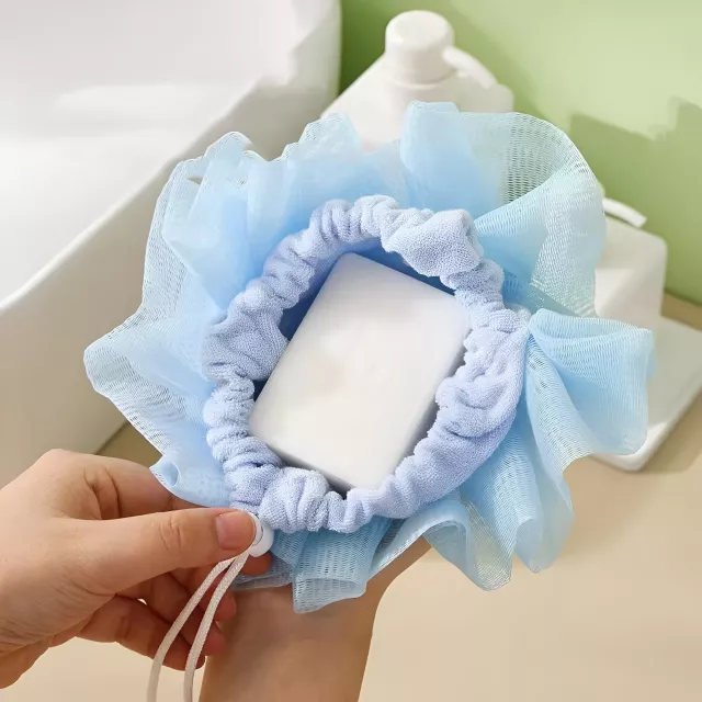 Upgrade your daily routine with this 2-in-1 Bath Ball Towel Loofah designed to cleanse, foam, and exfoliate all at once. This is not just a regular shower sponge – it combines a soft mesh loofah with a soap-holding towel design, giving you deeper cleaning and richer lather using less soap. With its smart drawstring closure, your soap stays securely inside while you wash, so you get maximum foam without the mess.