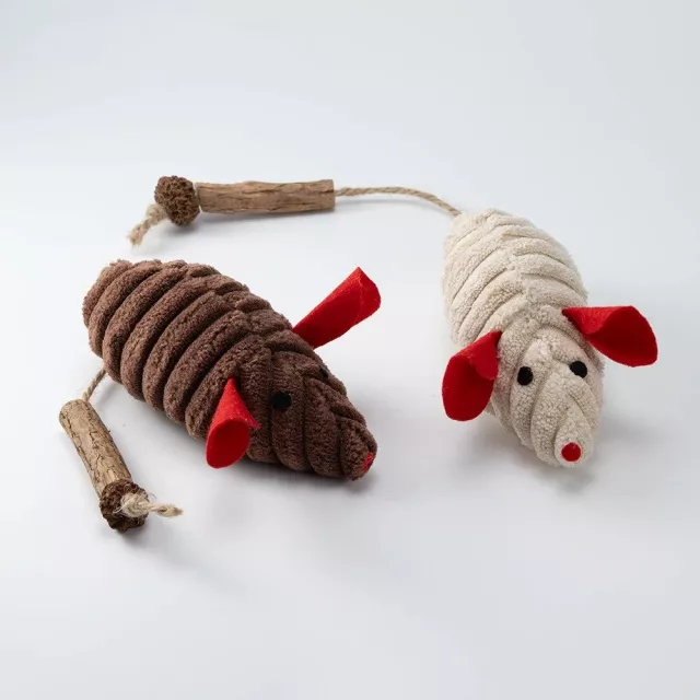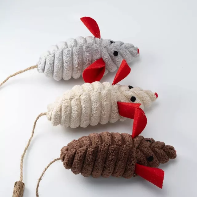 Bring out your cat’s natural hunter with this 3-piece plush mouse teaser toy set, designed to turn ordinary moments into exciting play sessions. Each soft mouse dangles from a flexible teasing stick, encouraging your pet to chase, pounce, and swat just like they would in the wild. With realistic colors in beige, gray, and brown, these toys grab your cat’s attention and keep them engaged for longer play.