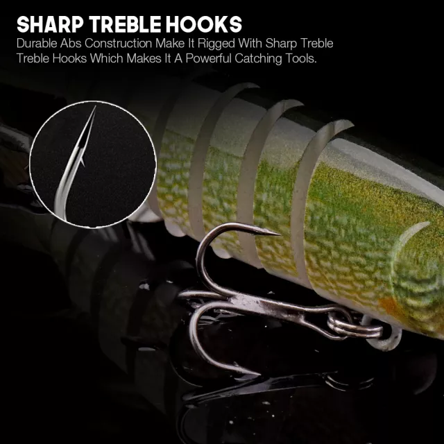 Each lure is built from durable ABS and engineered with a multi-section jointed body that moves with smooth side-to-side motion—even at slow retrieves. The 3D eyes, holographic detailing, and natural pike pattern create the illusion of a real fish gliding through the water, making it an excellent choice during early morning bites, cloudy days, or whenever predators rely heavily on sight.