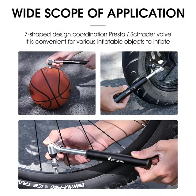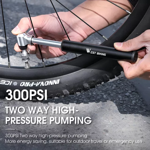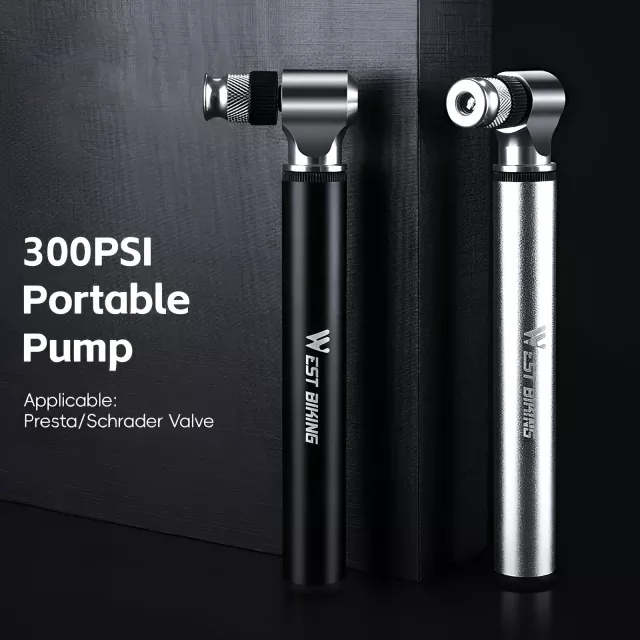 Meet the reliable, easy-to-carry bike pump designed to keep you rolling wherever your ride takes you. This compact 300PSI portable pump delivers strong, consistent air pressure and works with both Presta and Schrader valves, making it a must-have tool for road cyclists, mountain bikers, commuters, and weekend adventurers. Built from durable aluminum alloy, it offers long-lasting performance while staying ultralight and travel-friendly.