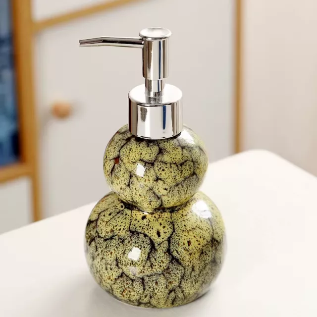 Bring charm and convenience to your daily routine with this beautifully crafted 330ml kiln-fired gourd ceramic soap and shampoo dispenser. Designed with a smooth gourd-shaped silhouette and a refined glaze finish, it adds a touch of artistry to any bathroom or kitchen space. The durable ceramic body feels solid in the hand, while the easy-press pump delivers a controlled, steady flow—perfect for shampoo, shower gel, hand soap, or lotion.