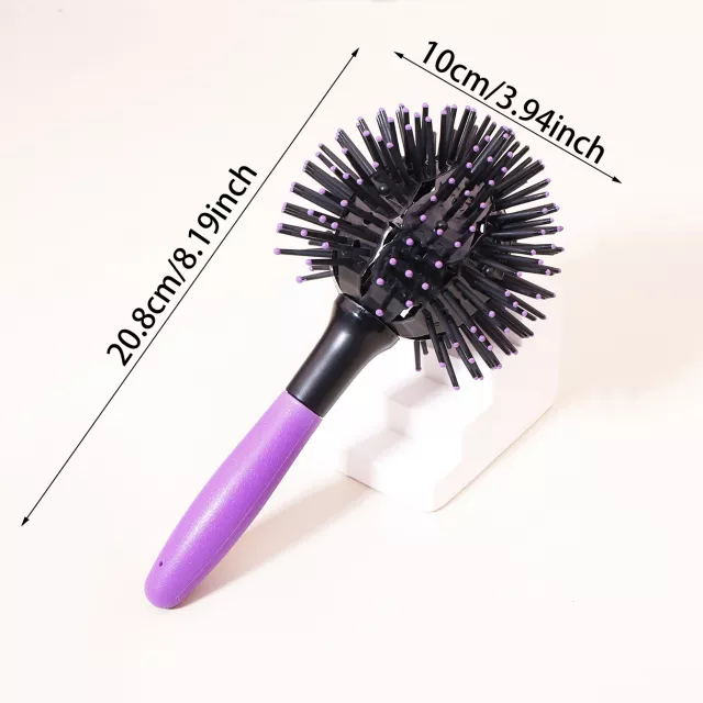 This innovative brush combines a 360° round design with flexible loop bristles crafted from durable PP material. Its spherical build allows you to glide smoothly through strands from any direction, helping you detangle, lift, and shape your hair without tugging.