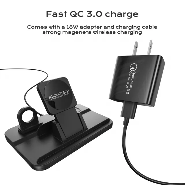This charging station is designed for people who value simplicity, speed, and smart organization. The strong magnetic alignment keeps your phone perfectly positioned for efficient power delivery, while the dedicated dock areas allow you to charge your watch and earbuds at the same time. No more swapping cables or searching for outlets.