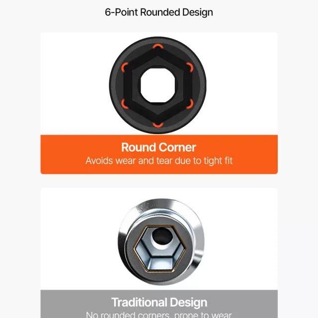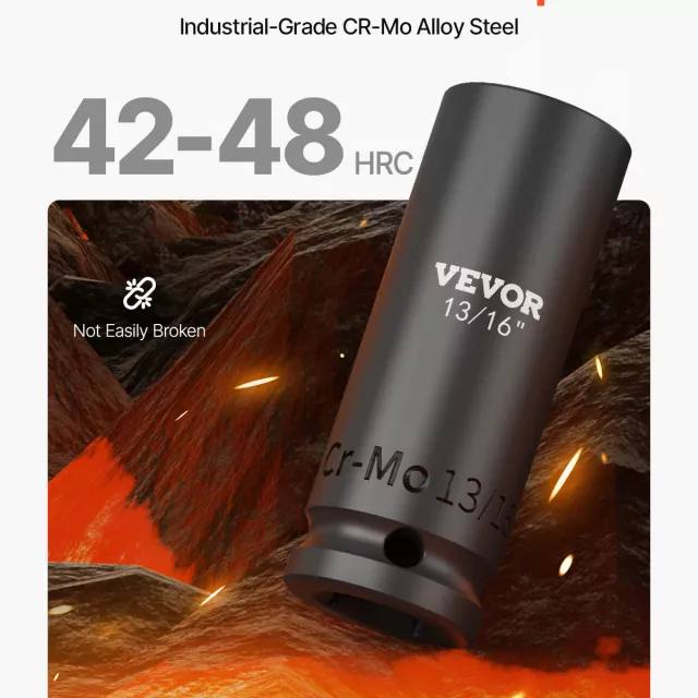 Each socket is crafted from high-grade Cr-Mo alloy steel and treated with a vacuum heat-hardening process to boost strength and impact resistance. The hexagonal 6-point design grips fasteners firmly while reducing pressure on the corners, helping prevent rounding and stripping. Deep and shallow sockets from 3/8″ up to 1-1/2″ cover a wide range of needs, making the set ideal for everyday shop tasks as well as rugged impact-wrench use.