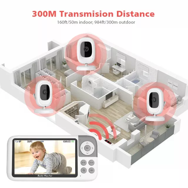Experience worry-free parenting with this advanced 5-inch HD Baby Monitor designed to keep you connected to your little one day and night. With a crystal-clear 720P display, powerful 3X digital zoom, and long-range wireless transmission up to 984 ft outdoors, you’ll always know your baby is safe and comfortable. Whether you’re cooking in the kitchen or relaxing in another room, this monitor delivers instant clarity, dependable sound, and soothing features that make life easier.