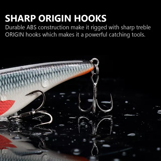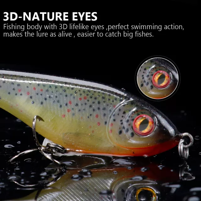 These artificial lures feature a detailed, realistic design complete with 3D eyes and a fish-printed body for maximum visual appeal. Inside each lure is a finely balanced steel-ball chamber that creates natural rattling vibrations as you retrieve, helping predators detect the bait even in murky waters. Durable ABS construction ensures long-lasting performance, while two ultra-sharp treble hooks provide secure, reliable penetration so your catch never slips away.