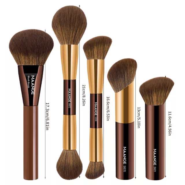 • Versatile 5-piece set suitable for foundation, concealer, blush, bronzer, and powder.