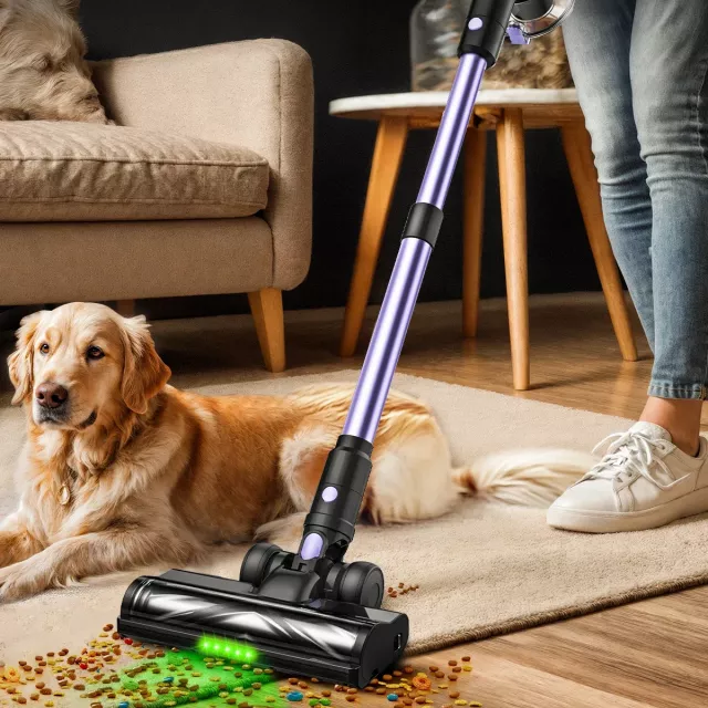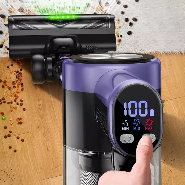Enjoy the freedom of cordless cleaning with up to 60 minutes of uninterrupted runtime—perfect for homes up to 2,500 sq.ft. The smart LED screen keeps you informed of battery status, suction mode, and alerts, while three easy-switch suction levels let you adapt quickly from hardwood to carpet. Its self-standing design means you can pause anytime without leaning it against a wall, and the bright LED floor lights reveal dust and hair hidden in dark corners.