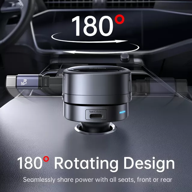 The 180° rotating head lets you adjust the charger for the perfect angle, so it never blocks your controls or feels awkward to use. The premium retractable cable stretches smoothly and pulls back neatly, keeping your car interior clean and stylish.