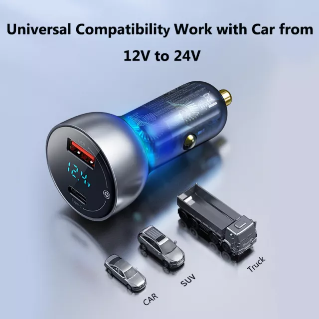 Upgrade your on-the-go charging experience with this high-performance 65W dual-port car charger. Designed for drivers who rely on their devices, it delivers full-speed power to phones, tablets, and laptops at the same time. With advanced QC and PPS fast-charging technology, you get safe, efficient, and intelligent power delivery on every trip. Compact, lightweight, and built from durable aluminum and premium plastics, it fits seamlessly into any vehicle’s 12V cigarette lighter port.