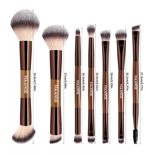 Discover the ultimate all-in-one makeup brush set designed to make every look smoother, faster, and effortlessly flawless. This 7-piece double-ended collection gives you 14 versatile brush heads crafted with high-quality synthetic hair for a soft, even, and gentle application. Whether you’re perfecting your foundation, blending your eyeshadow, or adding definition to your contour, these brushes deliver seamless results every time.