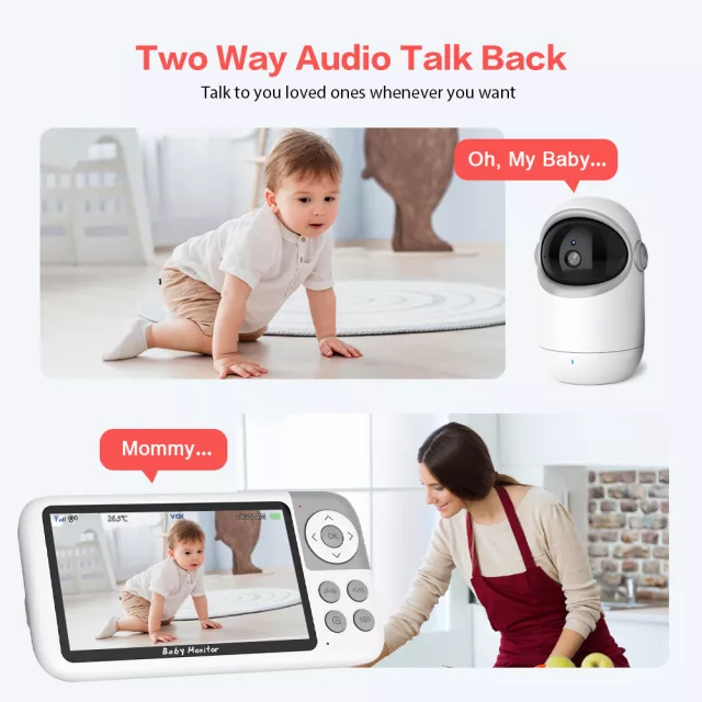 Keep a close eye on your little one with this advanced 720P video baby monitor featuring a bright 5-inch display and smooth pan-tilt control. Designed to give parents peace of mind day and night, this monitor delivers crystal-clear visuals, long-distance transmission, and reassuring two-way audio communication. Whether you’re in another room or relaxing outdoors, you can stay connected to your baby with ease.