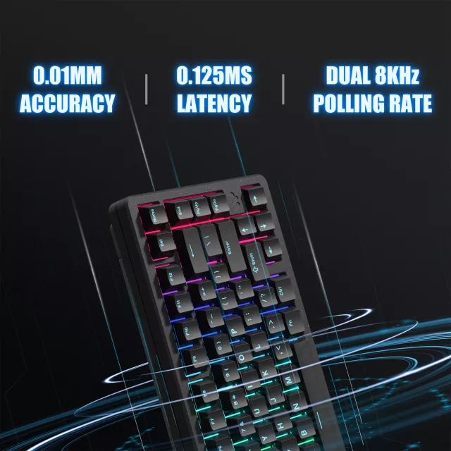 Unlock a new level of typing and gaming performance with this advanced 75% wireless magnetic mechanical keyboard. Built for those who demand speed, accuracy, and comfort, it blends responsive magnetic switches with versatile tri-mode connectivity. Whether you’re working, gaming, or multitasking across multiple screens, this keyboard gives you smooth control and effortless mobility.