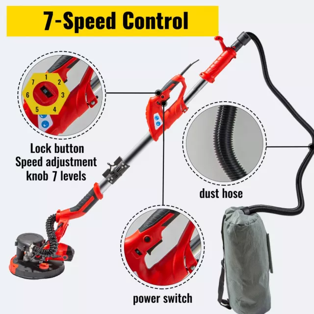This drywall sander combines power, comfort, and convenience for a smooth finishing experience every time. It’s best used for sanding drywall, leveling ceilings, polishing interior surfaces, or prepping walls for painting. What makes it special is its blend of strong performance and thoughtful features—like the dust-reducing self-suction system and the adjustable telescoping handle—making tough sanding jobs significantly easier and cleaner.