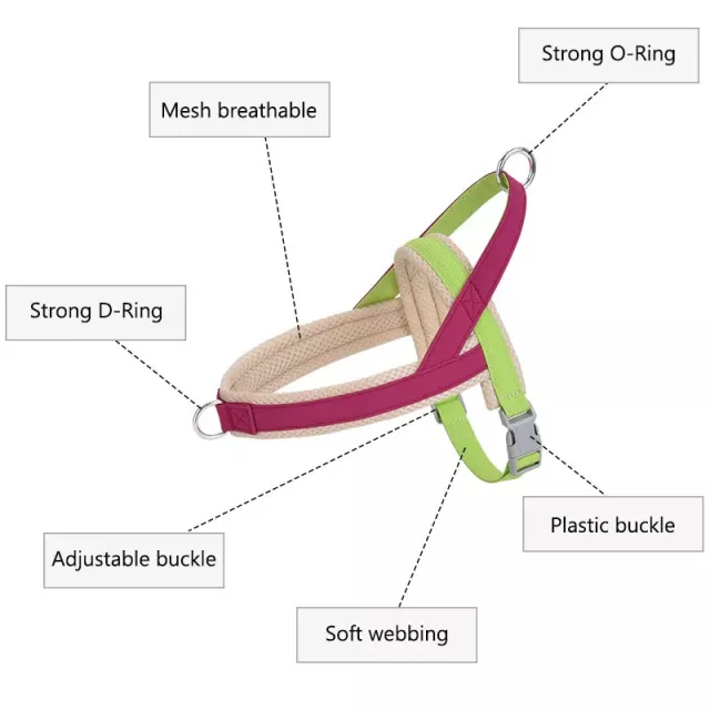 This harness is made from lightweight polyester blends, offering a soft feel while maintaining durability. Its adjustable straps allow you to customize the fit, ensuring your dog stays comfortable and supported during movement. A solid buckle closure keeps the harness secure, while the reflective detailing boosts visibility during evening or early-morning outings. With breathable materials and a flexible design, your dog can enjoy full mobility in any season.
