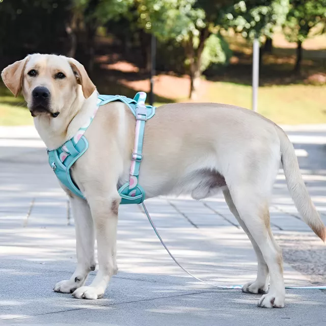 This harness comes with several essential features that make it stand out. Its fully adjustable design ensures a snug and comfortable fit, while the built-in reflective detailing increases visibility during low-light walks. Strong buckles keep everything securely in place, and the breathable material helps prevent overheating during warm-weather outings. These basic yet important features make this harness ideal for every season—summer, fall, winter, and spring.