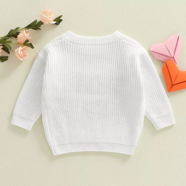 With its crew neck design and long sleeves, this sweater offers gentle warmth without feeling bulky. It’s ideal for layering on cooler spring days or wearing alone during mild weather. Whether it’s a family gathering, photo shoot, or a cozy playdate, your little girl will look irresistibly cute and feel comfortable all day long.