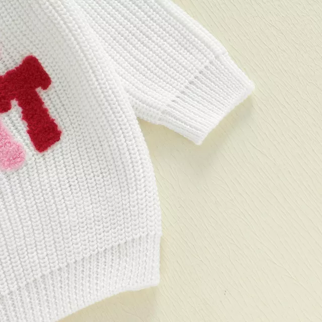 Wrap your little one in cozy love with this adorable knitted sweater, specially designed for baby girls aged 0–4 years. Made with a soft, breathable blend of 95% cotton and 5% polyester, this charming top keeps your baby snug while allowing natural movement and comfort. The ribbed texture and embroidered letters add a touch of sweetness.