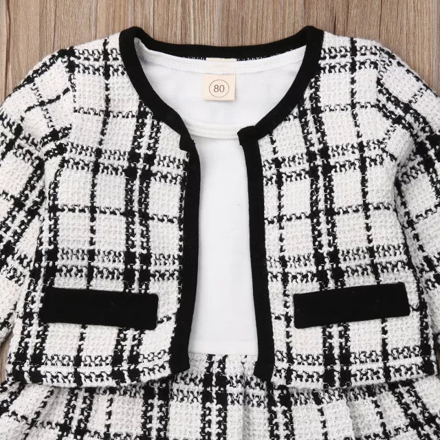 Wrap your little girl in timeless charm with this 2-piece Princess Outfit Set, designed especially for autumn and winter days. The outfit includes a chic black and white plaid coat top and a soft patchwork tutu dress—a perfect blend of warmth, elegance, and comfort. Whether it’s a family gathering, birthday celebration, or holiday photo shoot, your little one will shine with classic beauty and playful grace.