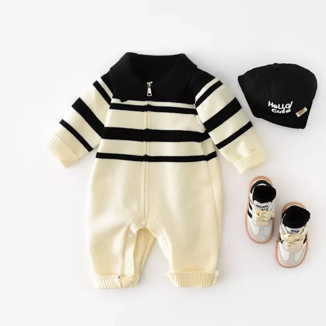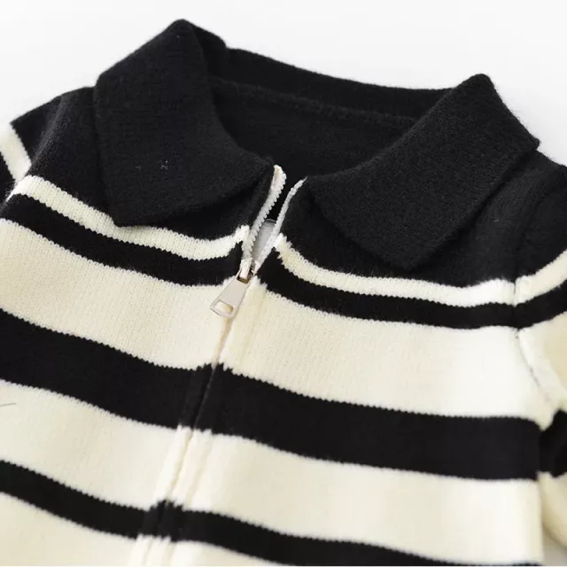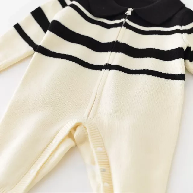 Baby Striped Knit Romper with Collar and Full-Zip Front