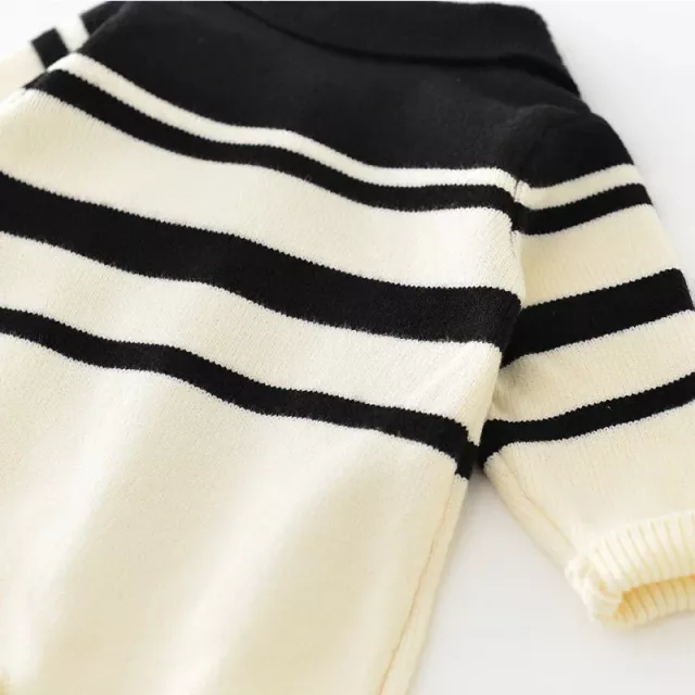 This striped knit romper is best used during the autumn season, but its breathable design makes it suitable for cooler spring days too. It’s perfect for daily wear, family gatherings, daycare, and adorable photo sessions. Its mix of comfort, practicality, and fashionable details makes it stand out from ordinary baby clothing.