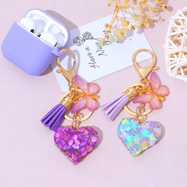 Bring a little sparkle into your daily life with this boho-inspired sequin heart and butterfly tassel keychain. Designed to be both eye-catching and practical, this charming accessory adds instant personality to your keys, handbag, backpack, or beach tote. Its playful mix of shiny sequins, soft tassel details, and elegant champagne gold metal makes it the perfect blend of fun and fashion.