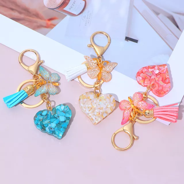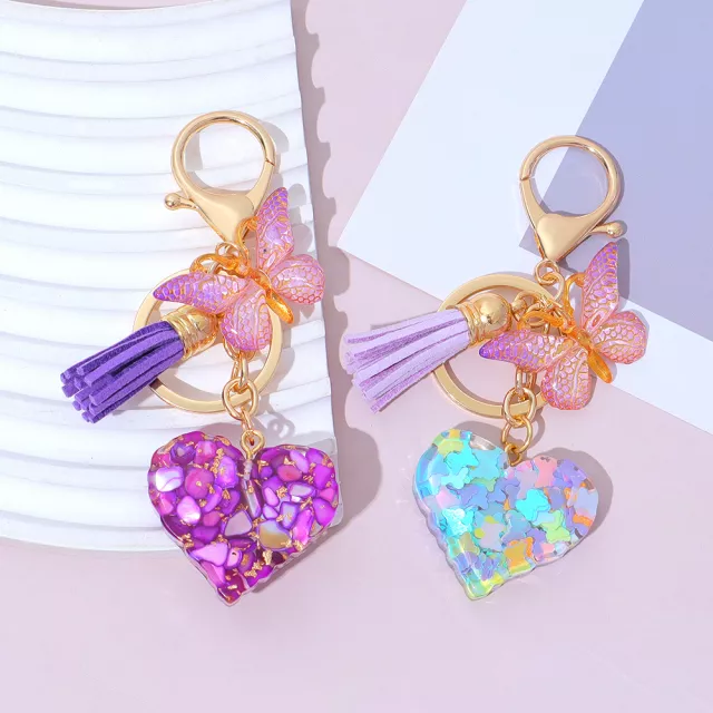 Boho Sequin Heart & Butterfly Tassel Keychain Pendant