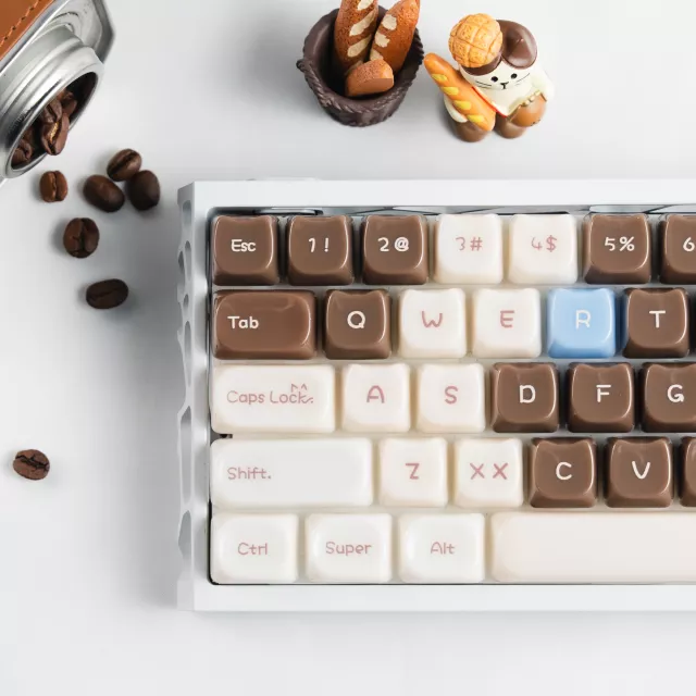 Transform your mechanical keyboard into a delightful masterpiece with these Chocolate Jelly Cat Foggy Translucent Keycaps. Designed to bring personality and comfort to every press, this enchanting 148-key set blends cozy pastel tones, whimsical cat-inspired details, and a foggy ice-crystal finish that glows beautifully under RGB lighting. Whether you’re gaming late into the night or typing during a peaceful morning, these keycaps add a touch of magic to every moment.