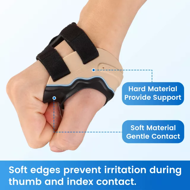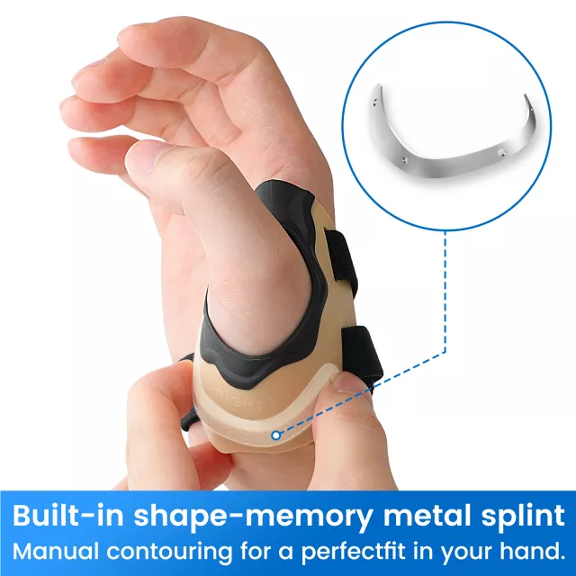 This brace features a customized, contoured metal insert that molds to the root of your thumb for a precise, supportive fit. It stabilizes the CMC joint without restricting the rest of your hand, making it ideal for tasks where you need strength and dexterity. The main body is crafted from high-strength material for firm support, while the edges are wrapped in soft rubber to keep your skin comfortable and irritation-free.