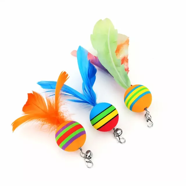 Colorful Feather Ball Cat Wand Replacement Head with Bell