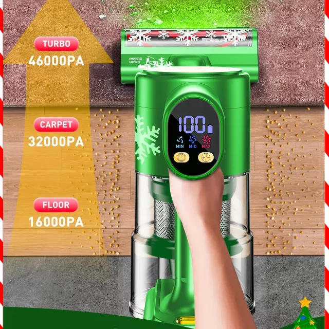 Designed for busy households, its self-standing build makes it easy to grab and store. Use it during holiday hosting, quick touch-ups between gatherings, or deep cleans any time of year. The friendly LED display, green LED floor lights, and multiple suction modes ensure effortless, precise cleaning wherever you need it.