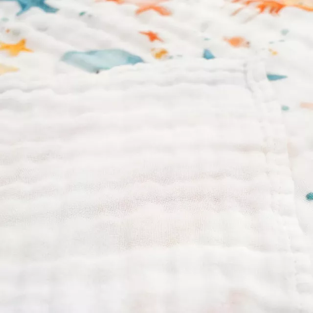 Crafted from 100% natural cotton, this blanket stands out for its gentle feel and impressive breathability. The six carefully layered sheets of muslin create the perfect balance of plush warmth and lightweight softness, making it a wonderful choice for winter use. Its cute printed patterns add charm, while the unisex design makes it a thoughtful gift for any baby. With no high-concern chemicals, it offers parents peace of mind and babies the safest touch.