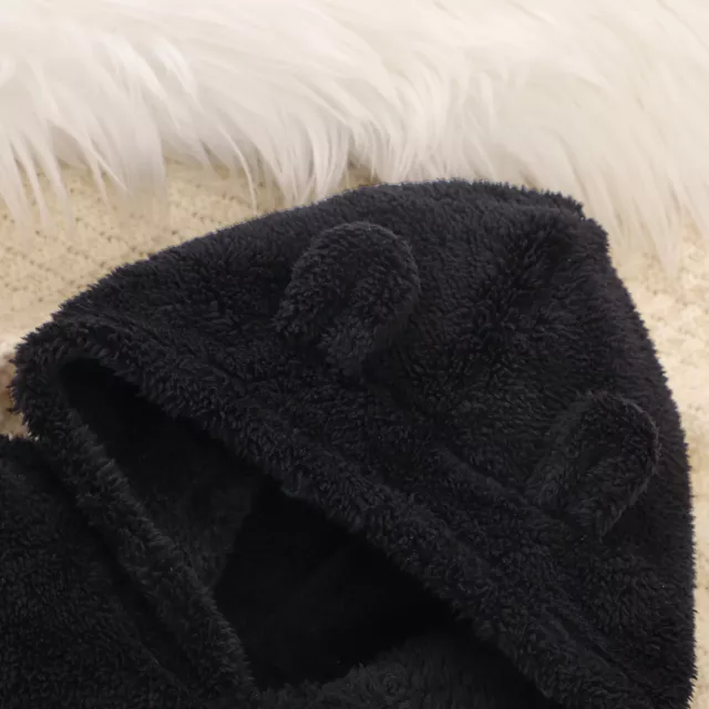 Cozy Black Plush Hooded Sweater with Bear Ears for Boys