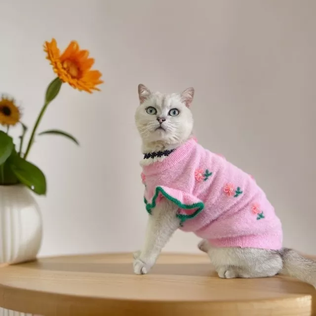 This sweater is best used during the autumn and winter months when your pet needs extra warmth indoors or outside. Its thickened wool fabric makes it special compared to regular pet clothing—your furry friend stays warm without overheating. The cute floral design and soft texture turn everyday wear into something charming and comfortable. Whether lounging at home, walking in the park, or visiting friends, your pet will stay cozy and look adorable.