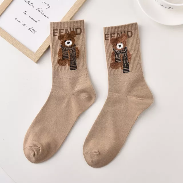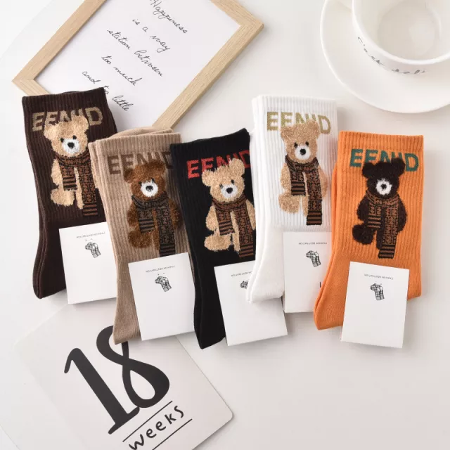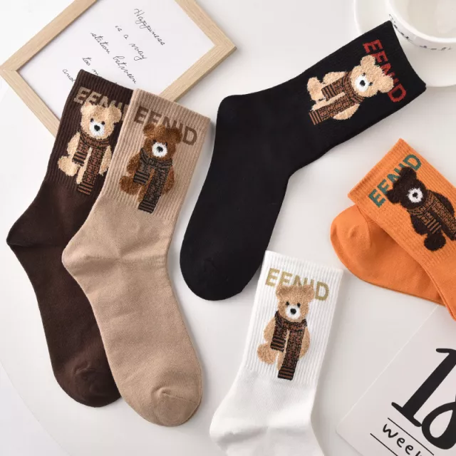These socks feature a delightful cartoon bear pattern that instantly elevates your mood. Their casual style blends easily with sneakers, boots, or home slippers, while the mid-tube height gives just the right amount of coverage. Whether you’re heading to school, relaxing at home, or completing a trendy streetwear look, these cute socks add personality and comfort to every step.