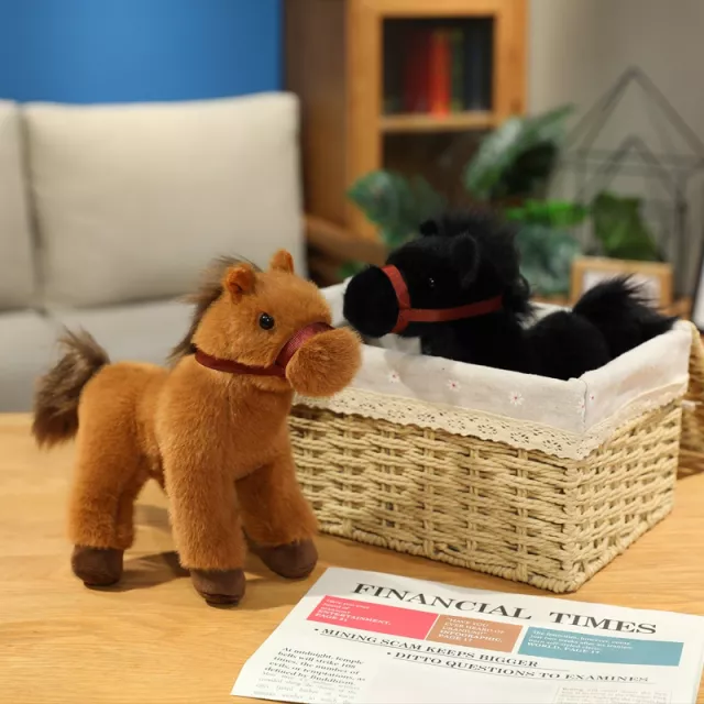 Bring a touch of charm and warmth into any space with this lifelike standing pony plush toy. Designed with soft plush fabric and filled with gentle PP cotton, this cute little horse offers a comforting feel and a delightful look that brightens up any room. Standing at approximately 9 inches tall, it’s the perfect size for desktops, shelves, bedside tables, and gift baskets.