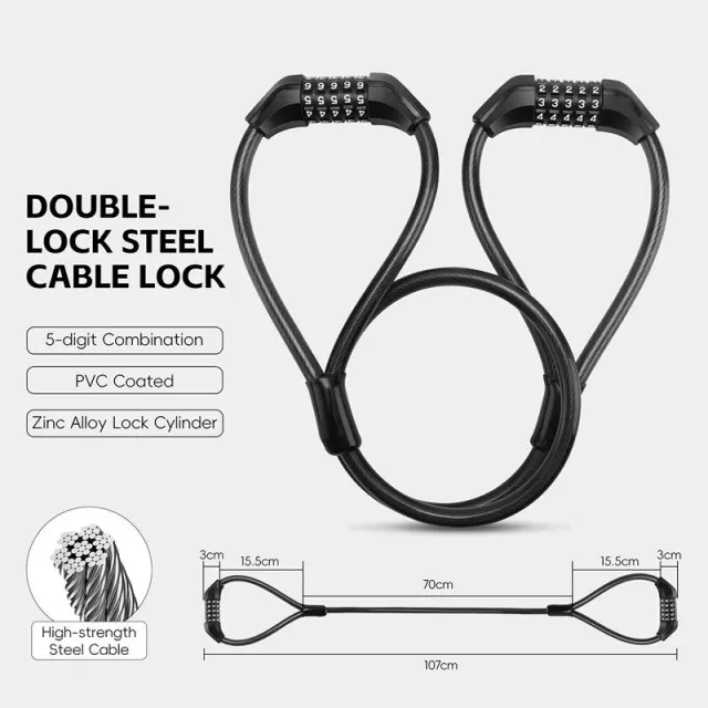 Double-Headed Combination Steel Cable Lock for Bikes and Motorcycles