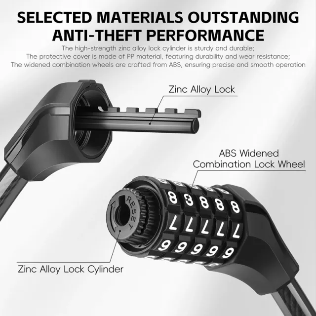 What makes this lock special is its smart combination of durability and convenience. The thickened steel cable delivers impressive resistance against cutting tools, while the dual-ended locking system ensures enhanced protection from multiple angles. With its 5-digit password design, you get over 100,000 possible combinations for added security—no keys needed and no worries about misplacing anything. The sturdy zinc alloy, ABS, and PVC build provides long-term reliability without adding unnecessary bulk, keeping the total weight to just about 1.16 lbs.