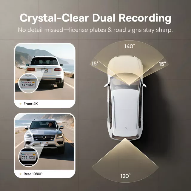 Your car should protect you just as much as you protect it. This dual-lens dash camera brings next-level clarity, intelligent safety features, and effortless control into one compact system. With 4K Ultra HD front recording and a 1080P rear camera, it captures every detail on the road – from license plates to traffic signs – even at highway speeds.