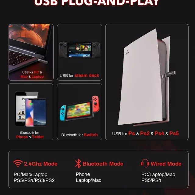 Step into a world of clear, powerful sound designed to elevate every gaming moment. This dual wireless gaming headset brings you smooth, high-performance 2.4GHz audio for competitive play, along with Bluetooth 5.0 for effortless connection to your phone or tablet. Whether you’re battling online, watching movies, or staying connected on mobile, you get the freedom to switch modes instantly with two quick taps.
