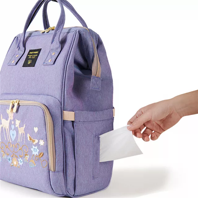 This spacious diaper bag is crafted for moms who want effortless organization without giving up a fashionable look. Its eye-catching purple embroidery brings a unique charm, making it a standout accessory whether you’re running errands, heading to the park, or traveling with your baby.