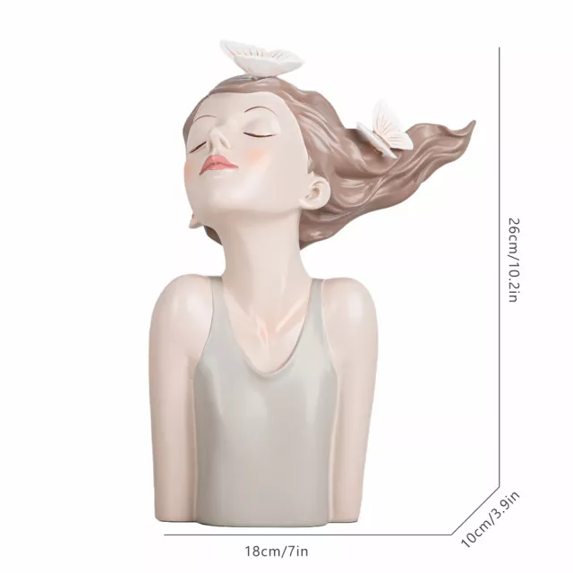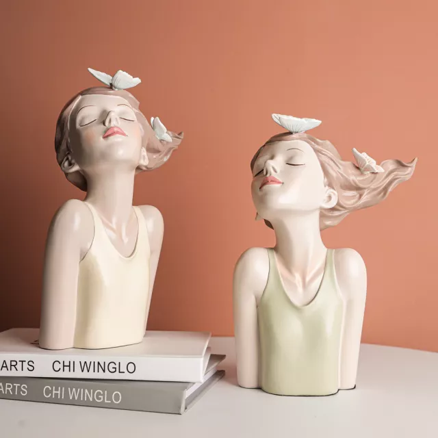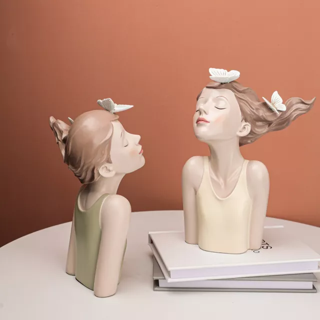 Standing at approximately 10.2 inches tall (7×3.9×10.2in), this elegant resin bust showcases a young girl adorned with delicate butterflies resting gracefully on her hair — a gentle symbol of transformation, freedom, and hope. Available in three refined hues — green, grey, and light yellow — its low-saturation color palette brings a soothing, modern aesthetic that blends beautifully with contemporary decor themes.