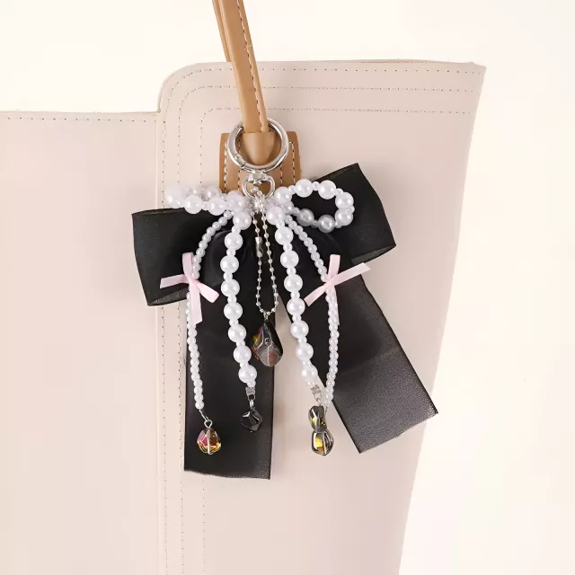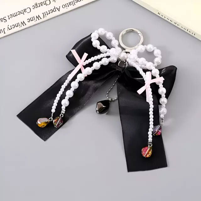 Elevate your everyday style with this Elegant Ribbon Bow Pearl Keychain — a perfect fusion of charm, sophistication, and practicality. Designed for women who appreciate a touch of luxury in the little things, this exquisite keychain features a delicate ribbon bow adorned with lustrous simulated pearls and sparkling black crystals. Whether hanging from your handbag, wallet, or phone, it adds a graceful sparkle that complements every outfit and occasion.
